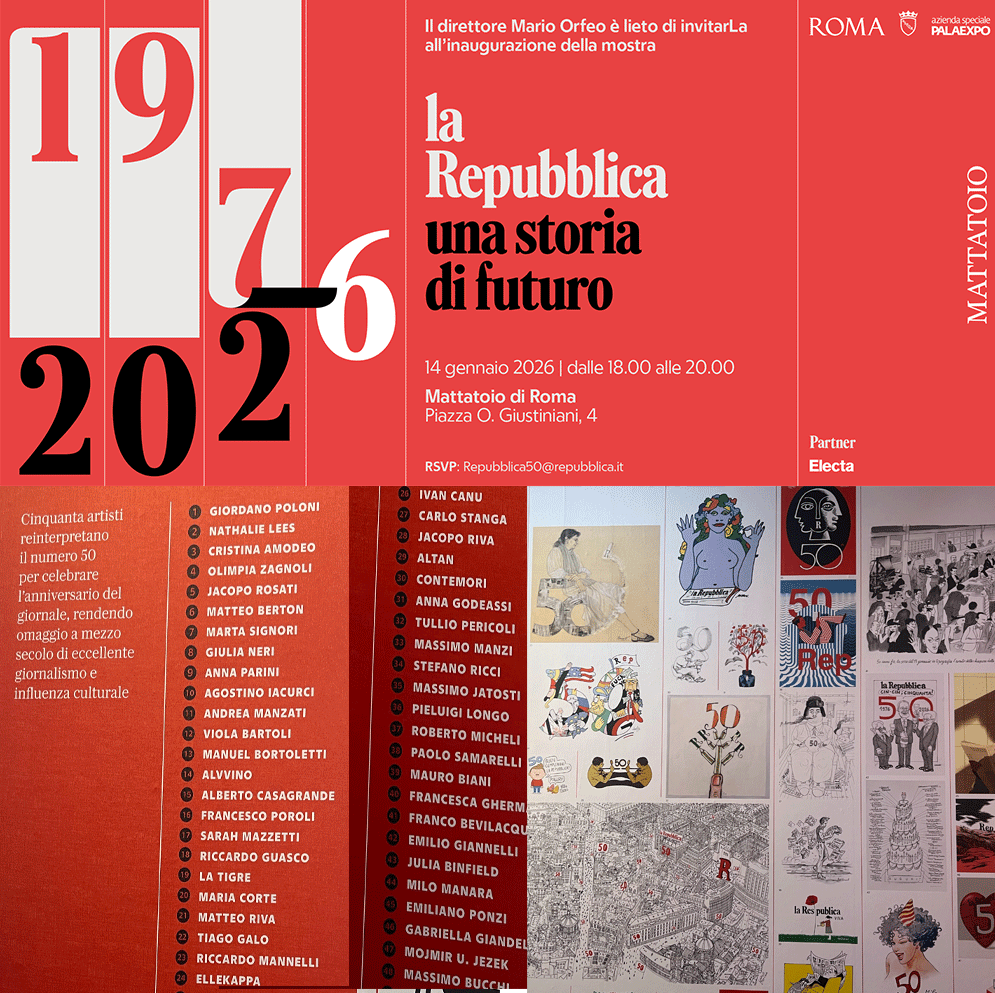 Una bella mostra ora al Mattatoio di Testaccio per i 50 anni di Repubblica. Nella mostra anche 50 illustrazioni di 50 artisti. La mia tavola. P.s. qui le indicazioni per visitarla.