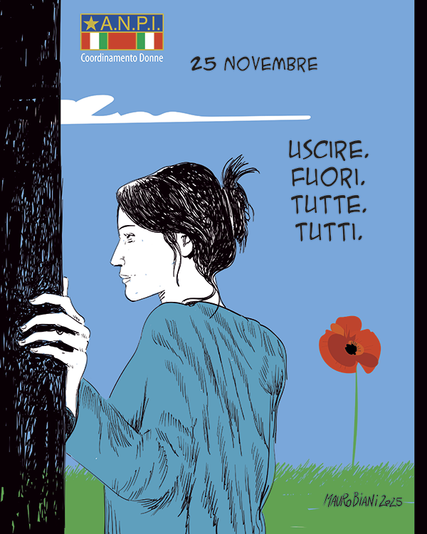 “Il manifesto per domani 25 novembre 2025 è stato realizzato per il Coordinamento nazionale Donne Anpi da Mauro Biani, che ringraziamo tutte e tutti. Facciamo rumore, usciamo, fuori, tutte e tutti, ma facciamo soprattutto cultura, di dialogo, di pluralità, di parità, di democrazia“.