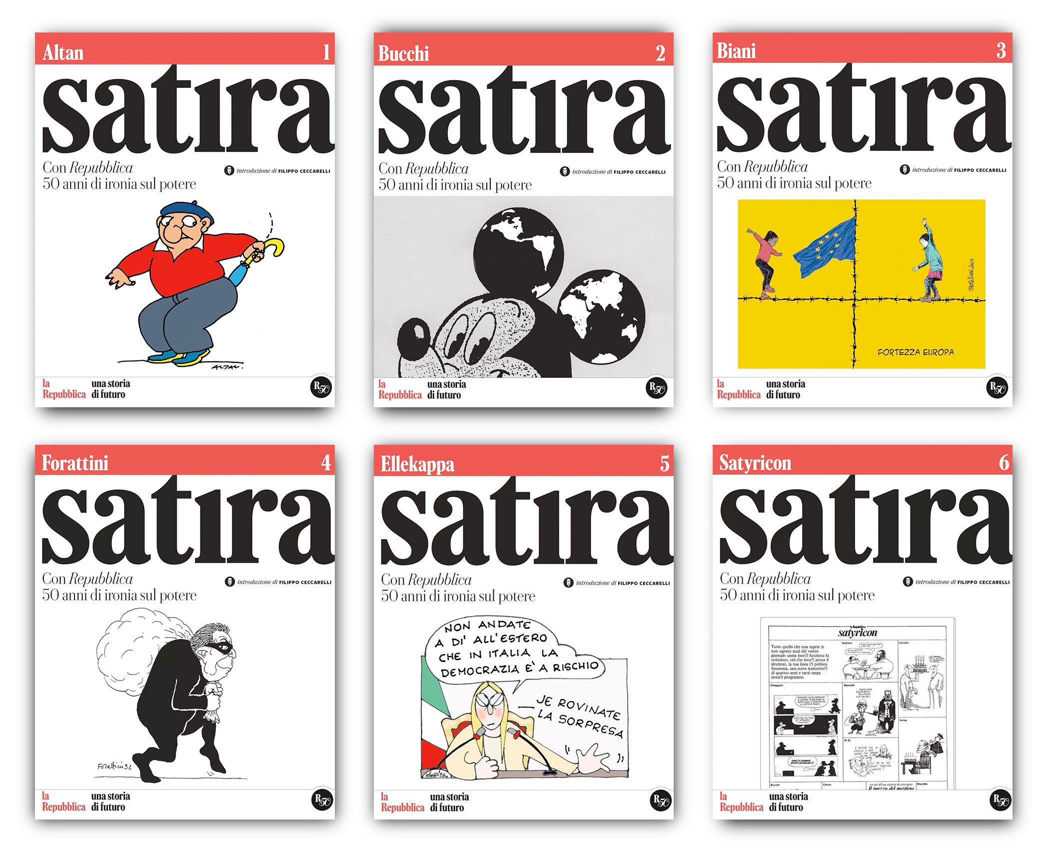 Dal 20 aprile sei uscite in omaggio con Repubblica per lettrici e lettori: Altan, Bucchi, Biani, Forattini, Ellekappa e il meglio di “Satyricon. La mia raccolta esce mercoledì 22 aprile.